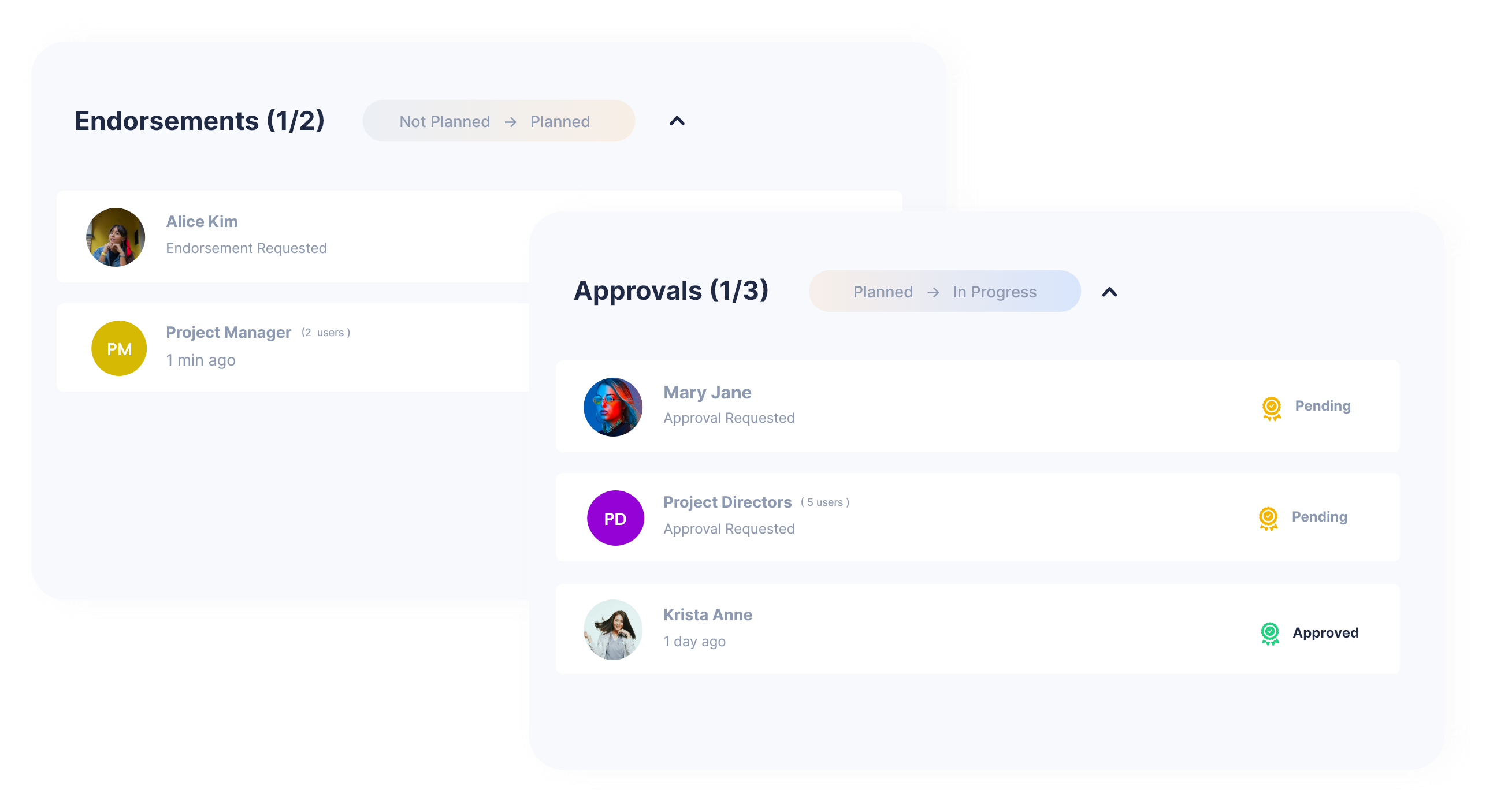 Assign individuals or teams to endorse and approve, with full flexibility over roles, timing, and access - so nothing slips through the cracks.