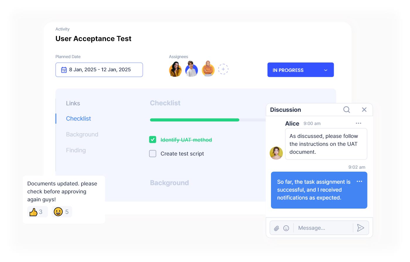 Get real-time updates on task changes, approvals, and actions - so nothing holds up the flow.