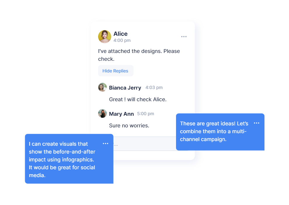 Every conversation stays tied to the task - no noise, no context-switching. Planally’s built-in chat keeps collaboration clear, relevant, and right on track.